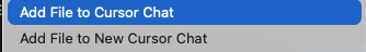 Add File to Cursor Chatを選択するとプロンプト入力にファイルが表示されるので大変便利です。これは私の尊敬しているたにまこさんのツイートにありました。