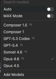 私はもっぱらOpus4.6です。特に開発環境を構築する際のCursorが今後使うルールをCursor自身に作成してもらっています。